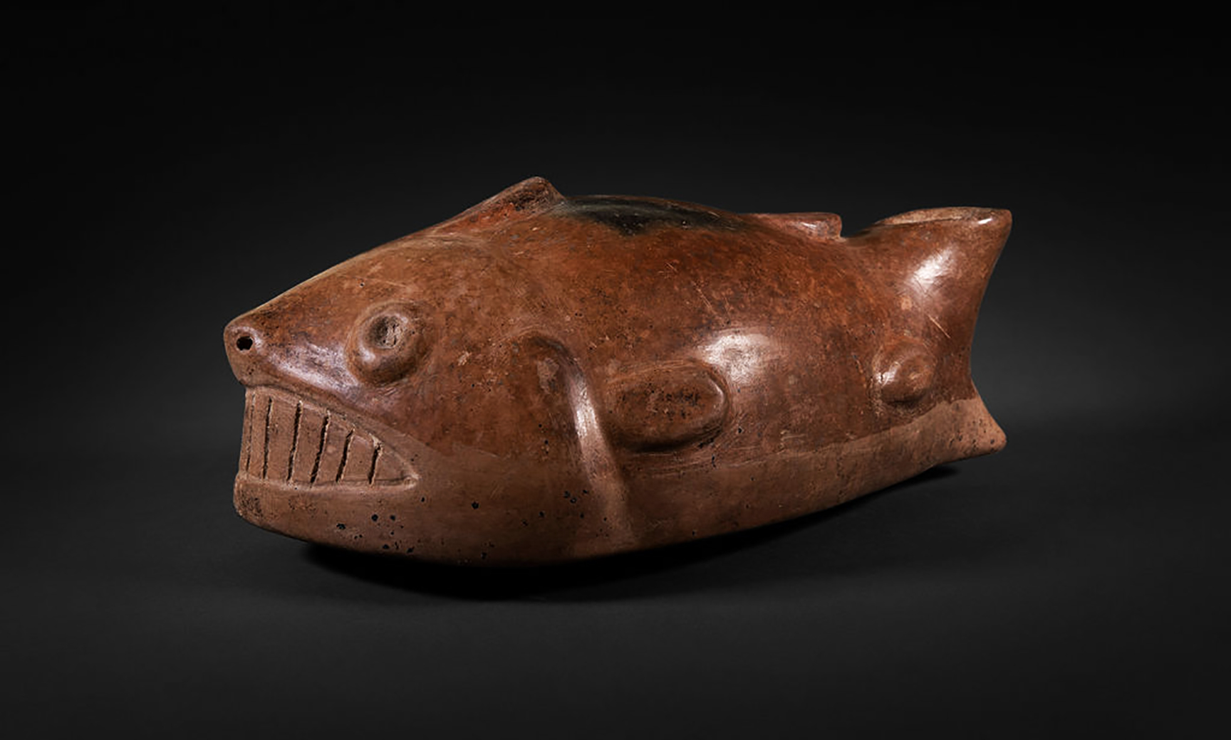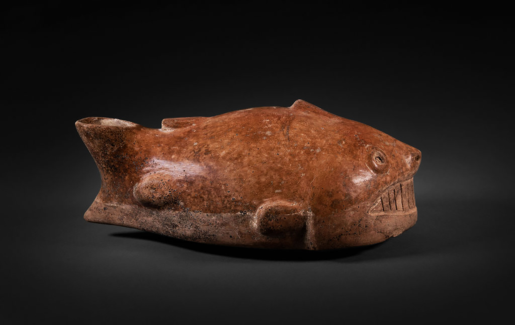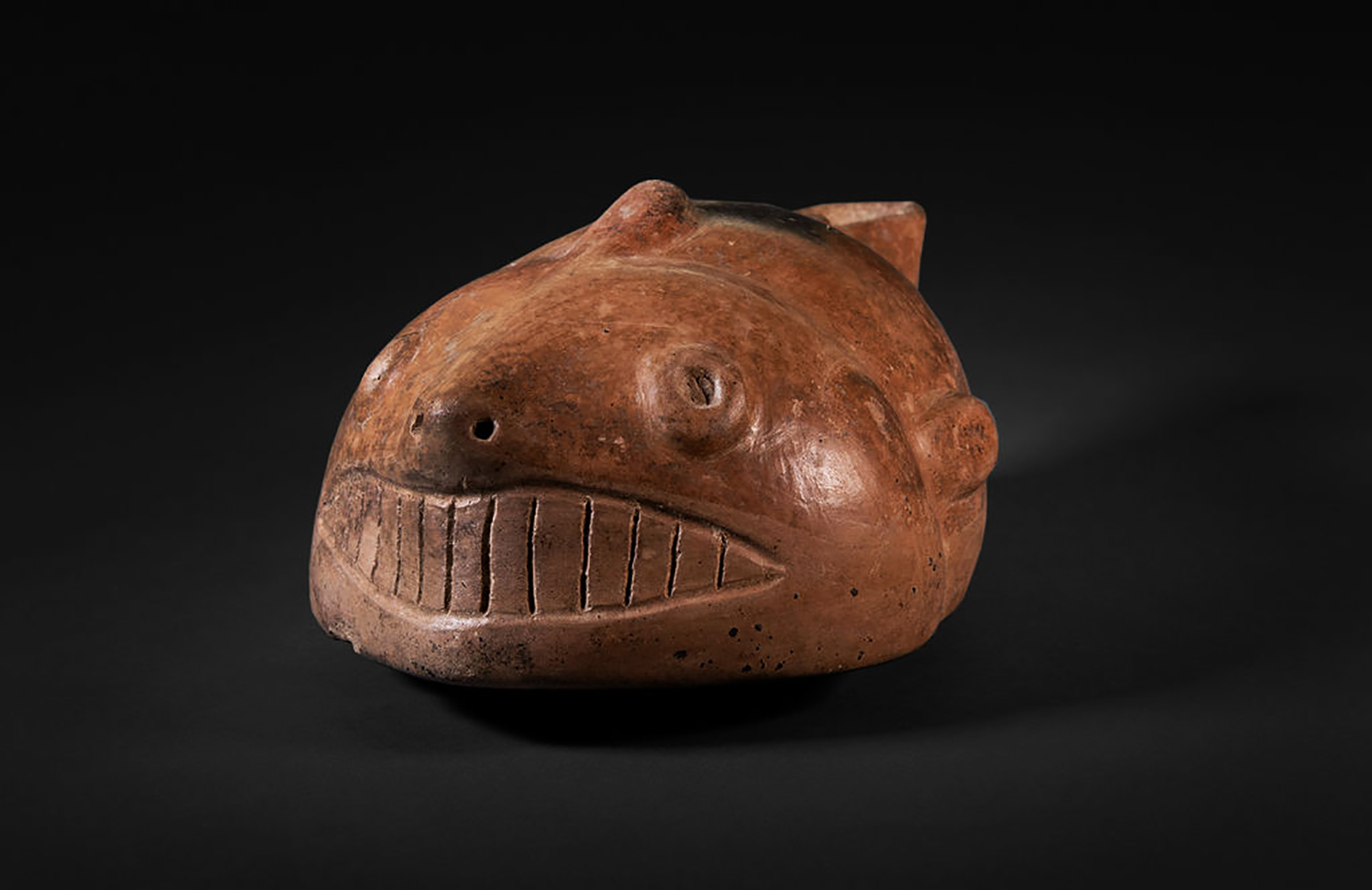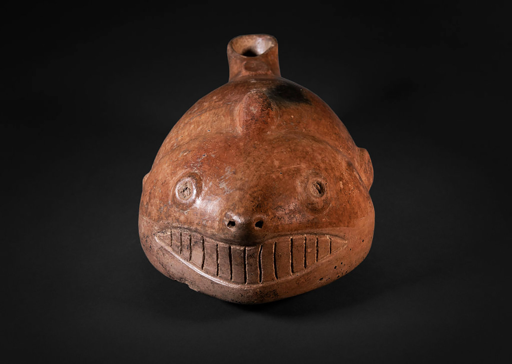 This shark effigy has a beautiful surface patina and short fins with a tail vent. It has the expression of a Great White Shark, the eyes with a thousand mile stare, with a single-minded attack.